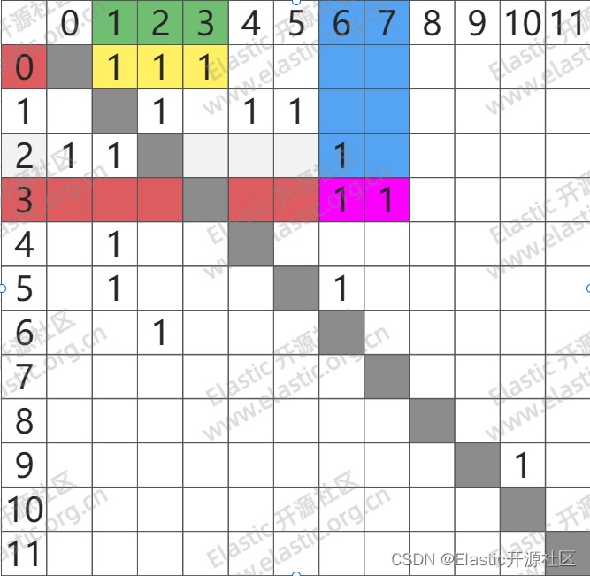 下图为 2.2 中图搜索所示`图`的`邻接矩阵`表示
